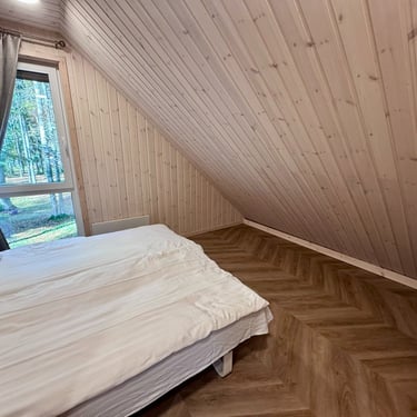 Miško nameliai Nr. 1-3 (dviviečiai su papildoma sofa-lova). Trys atskiri nameliai prie Lūksto ežero yra atokiau nuo pagrindinio paplūdimio, tačiau taip pat ant ežero kranto. Patogiausi dviem asmenims, tačiau pagal poreikį galima pasinaudoti nedidele sofa-lova (du maži vaikai arba vienas suaugęs). Juose yra mini virtuvė su šaldytuvu (su šaldikliu), indukcinė kaitlentė, gartraukis, virdulys, indai, įrankiai, patalynė, dušas, tualetas, kriauklė. Rekomenduojame turėti šlepetes. Jums pageidaujant suteikiame rankšluosčius (išskyrus paplūdimio). Terasoje – lauko baldai. Nemokamai galima naudotis šašlykinėmis, tačiau atsivežti savo groteles, iešmus. Malkas galima įsigyti pas mus arba turėti savo. Į šiuos namelius priimame ir su mažų veislių (iki 10 kg) augintiniais. Papildomo mokesčio netaikome, tačiau šeimininkai pasirūpina augintinio dubenėliais, guoliu, maistu, neleidžia miegoti lovoje, įsipareigoja augintinį prižiūrėti ir nevedžioti paplūdimyje. Prie kiekvieno namelio yra galimybė užsisakyti kubilą (už papildomą mokestį – 80 Eur, informuoti bent prieš parą).