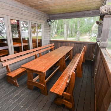 Dviviečiai butai prie ežero (Nr. 5–8) (papildomai sofa-lova) yra viename name, su bendra lauko terasa ir atskirais įėjimais iš jos. Viso yra 4 butai, tad puikiai tinka draugų kompanijai – galėsite turėti savo atskirus butus, su atskirais dušais ir tualetais, o laiką leisti kartu. Dėl nedidelio kambario ploto labiausiai tinka poroms, tačiau atvykus su vaikais, pagal poreikį galima naudoti ir nedidelę sofą-lovą (du maži vaikai arba vienas suaugęs). Juose rasite: mini virtuvėlę su šaldytuvu, el. kaitlentę, virdulį, indų, įrankių, patalynę. Dušas, tualetas, kriauklė. Rekomenduojame turėti šlepetes. Jums pageidaujant suteikiame rankšluosčius (išskyrus paplūdimio). Kieme – lauko baldai, nemokamai galima naudotis šašlykinėmis, tačiau atsivežti savo groteles, iešmus. Malkas galima įsigyti pas mus arba turėti savo. Augintinių į šiuos namelius nepriimame. Prie kiekvieno namelio yra galimybė užsisakyti kubilą (už papildomą mokestį – 80 Eur, informuoti bent prieš parą).