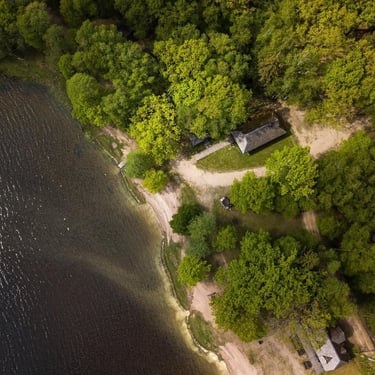 Pirties pastatas yra atokiau nuo pagrindinio paplūdimio, tačiau taip pat prie ežero. Antrame aukšte yra du kambariai su 14 miegamų vietų (viengulės lovos, pagal poreikį galima susistumti vieną šalia kitos). Pirmame aukšte yra salė su mini virtuve, šaldytuvu su šaldikliu, virduliu, mikrobangų krosnele, indais ir įrankiais. Pageidaujant duodame el. plytelę. Kitoje patalpoje yra dušas, tualetas, pirtis (į kainą jau įskaičiuotas pirties iškūrenimas). Jums pageidaujant suteikiame rankšluosčius (išskyrus paplūdimio). Nemokamai galima naudotis šašlykine, tačiau atsivežti savo groteles, iešmus. Malkas galima įsigyti pas mus arba turėti savo. Galime priimti su mažų veislių augintiniais. Papildomo mokesčio netaikome, tačiau šeimininkai pasirūpina augintinio dubenėliais, guoliu, maistu, neleidžia miegoti lovoje, įsipareigoja augintinį prižiūrėti ir nevedžioti paplūdimyje. Prie kiekvieno namelio yra galimybė užsisakyti kubilą (už papildomą mokestį – 80 Eur, informuoti bent prieš parą).